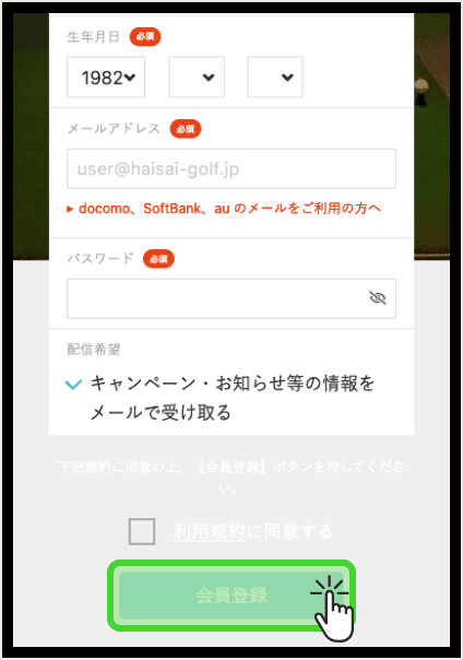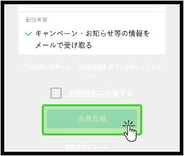 新規会員登録ページで会員情報を入力して、登録ボタンを押してください。